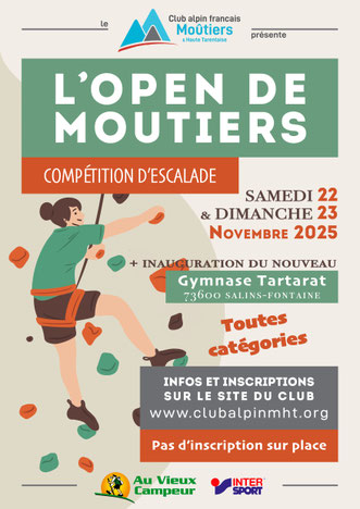 Compétiteurs, bénévoles et spectateur, nous vous convions à la 6e edition de l'Open de Moûtiers ces 22 et 23 novembre 2025.